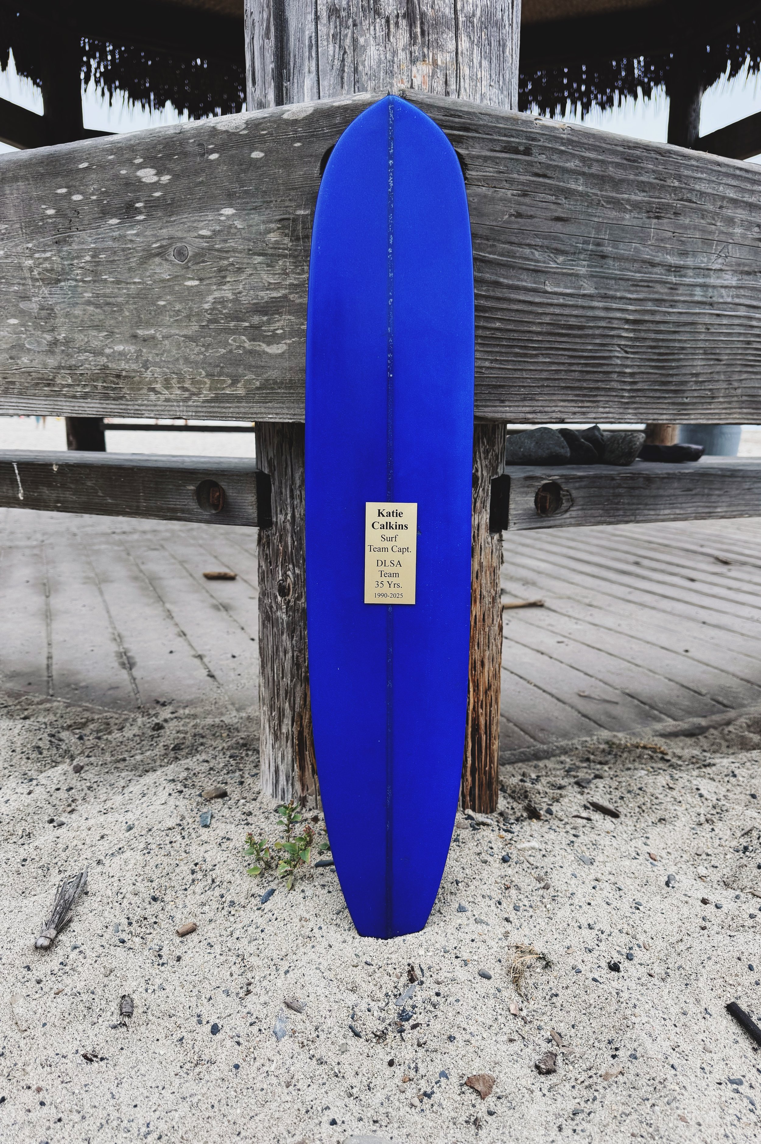Katie Calkins has been the of the Doheny Longboard Surfing Association for over 40 years, and 35 of those years she has been the team captain and winning leader.